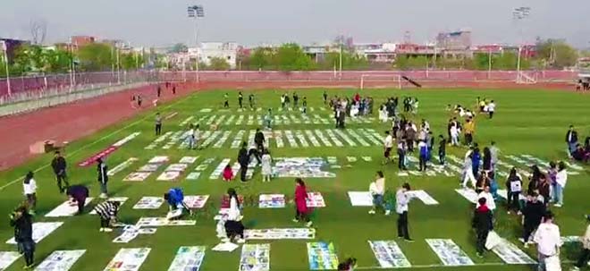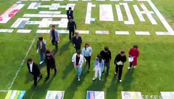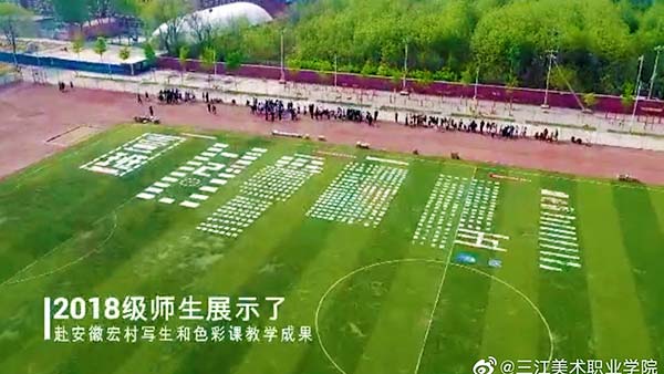 早晨,2018级师生全体在运动场草坪上按照班级摆放完成赴宏村写生和本学期色彩课创作的作品近1000件,学院副院长金红炜教授和朱军亮副教授组织各班级任课教师一起结合色彩写生教学结课展计划,开展了一次别开生面的色彩课程与美育教学成果展评。上午还特邀了中国东方文化研究会文教艺术委员会秘书长王伟等参与本次展评活动。展评活动还得到北京交通职业学院航拍专家的支持,所拍航拍视频已当天由中国东方文化研究会文教艺术委员会官方微博和微信公众号转发,较好地宣传了我院师生不辞辛苦行千里路写生作画,注重实践深入生活读万卷书的艺术情怀和创新践行中华美育精神的良好形象。