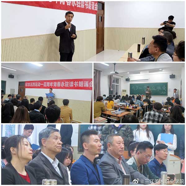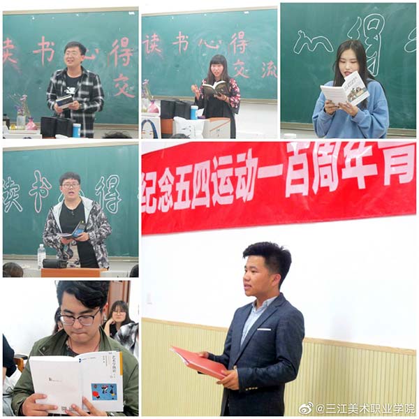 上午,各班级辅导员班主任还在昨天晚自习举办的读书心得交流班会基础上,评选出参加当日三江美院北京教学实习基地“纪念五四运动一百周年青春永驻读书朗诵会”人选。