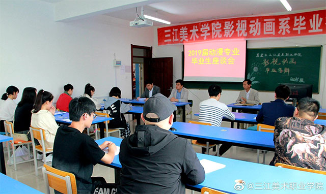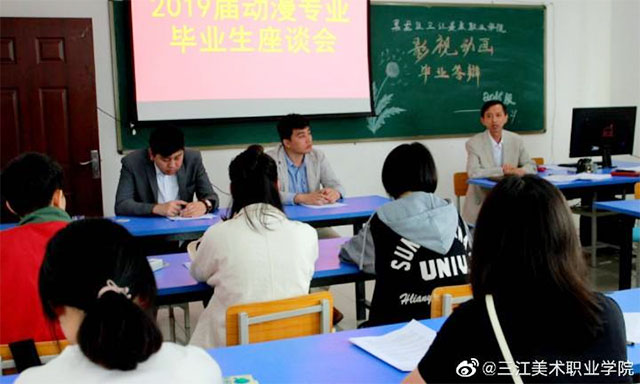 2019年6月28日下午,黑龙江三江美术职业学院影视动画系在明德楼101教室召开毕业生座谈会。座谈会由学院影视动画系主任马兆玉老师主持,专业教师多诚屹和教务处原淋淋老师出席。