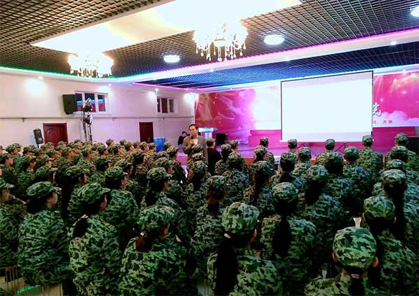 王院长还与在座的同学们用精美图片的方式一起分享了喜迎新生、军训动员、军训生活、内务整理、中韩办学等的精彩瞬间,让他们感受到大学生活是如此的丰富多彩,感受到三江美院家一样的温暖。