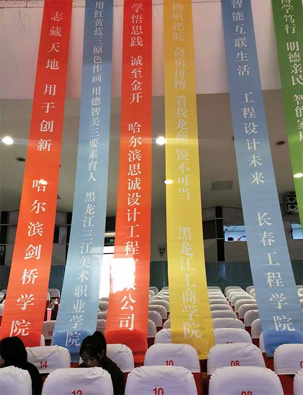 黑龙江三江美术职业学院由数传系肖瑶、信管学院姚葳、环艺系代峰、张健四位跨学科、跨专业的老师,带领郇文欣、翟璐瑶、赵家宁、曹若宁、艾春梅、张建、霍思龙、高晓宇八名同学,组成“鲲鹏队”和“威锋队”参与了此次比赛的激烈竞争。