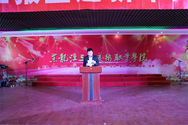 12月26日下午14时,黑龙江三江美术职业学院哈尔滨教学基地2019年度工作汇报暨迎新年文艺联欢会在学院大礼堂隆重开幕。多才多艺的三江美术职业学院师生联袂上演12个风格各异、精彩纷呈的节目,其中穿插着为优秀教官、三好学生、优秀学生干部、先进班集体颁奖盛典,让联欢会现场高潮迭起、掌声雷动。黑龙江三江美术职业学院理事长王英海、党委书记王少青、副院长鞠剑锋、副院长梁晓波、党委副书记马鸿飞等学院领导及各部门主要负责人也来到了现场,与同学们在一起共同欣赏了演出,和同学们共同度过了这一美好的时刻。联欢会由学院党委副书记、学生处处长马鸿飞主持。