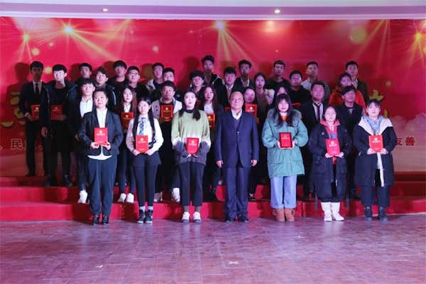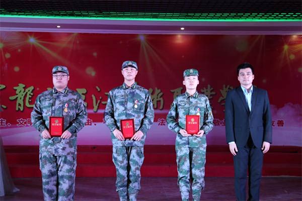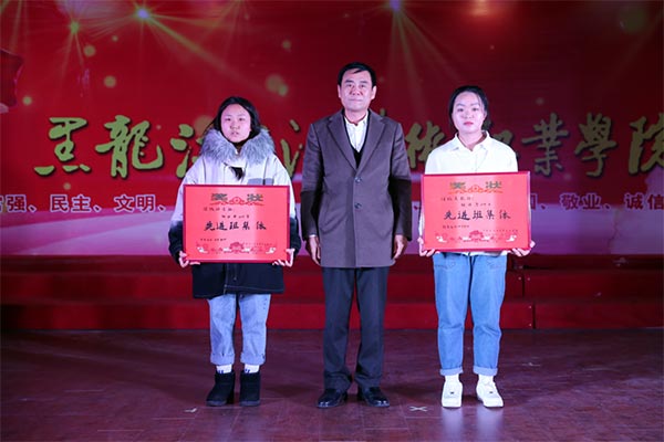 演出期间,三江美术职业学院王英海院长、鞠剑锋副院长、梁晓波副院长、马鸿飞副书记分别对优秀教官、三好学生、优秀学生干部、先进班集体进行颁奖。三位院级领导对获奖同学与资鼓励并亲切握手问候,为他们送上新年的祝福,使得获奖的同学们感受到了学院对他们由衷的关怀与热切的期望。