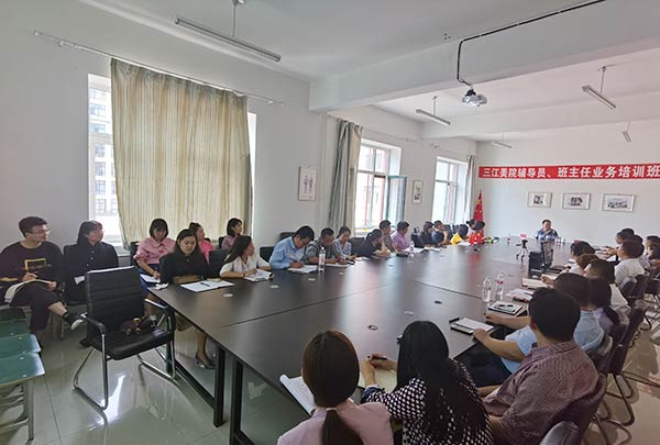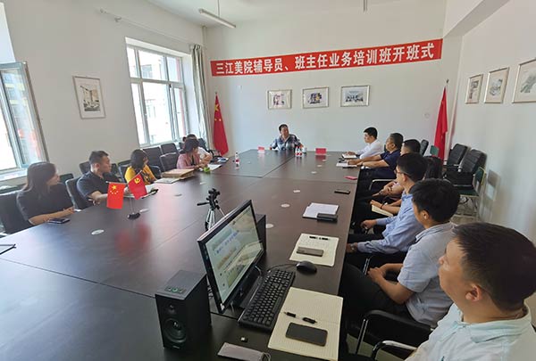 2020年9月1日,黑龙江三江美术职业学院辅导员、班主任岗位培训班正式开班。学院党委书记王少青出席开班式并讲话,哈尔滨教学实习基地全体辅导员和班主任以及部分行政人员参加培训,北京教学实习基地全体辅导员和班主任通过线上直播的形式同步参加培训。开班式由学院党委副书记、学生处长马鸿飞主持。