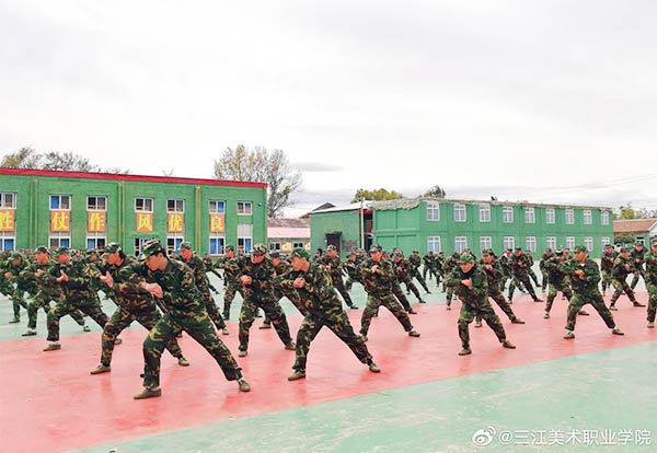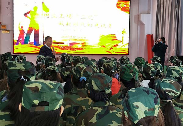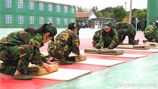 10月5日下午,王英海院长和王少青书记莅临学院北京永宁军训基地,在学院副院长金红炜和军训基地负责人陪同下检查了学院2020级新生的队列序列训练并与全体参训师生亲切合影。当日晚7时,王英海院长结合三江美院40年发展历史,为师生们做了一场题为《走进龙美——看历史看内涵看发展》的入学教育精彩演讲。师生们通过聆听王英海院长深入浅出的演讲,对学院倡导的拼搏、探索、求实、创新校风校训和办学理念有了深刻的理解。