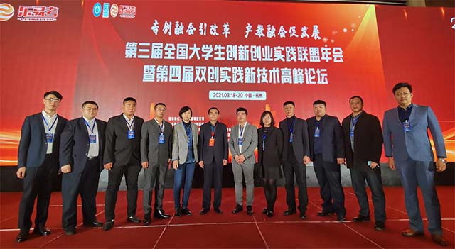 2021年3月19日至20日,黑龙江三江美术职业学院院长王英海教授率领11名中层干部及骨干教师赴浙江省杭州市参加了以“专创融合引改革,产教融合促发展”为主题的第三届全国大学生创新创业实践联盟年会暨第四届双创实践技术高峰论坛(以下简称实盟年会)。