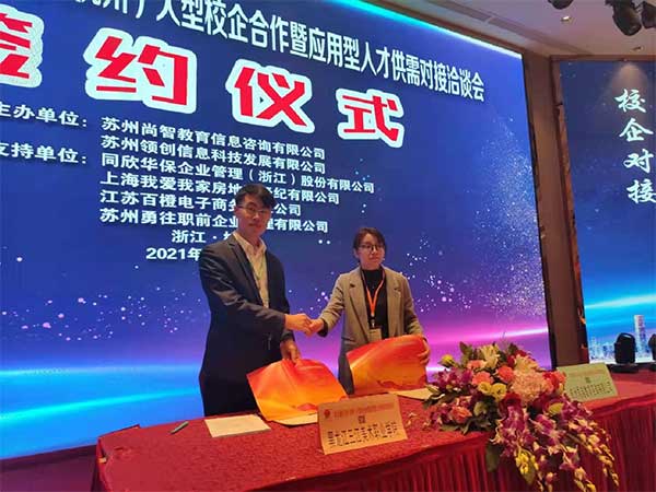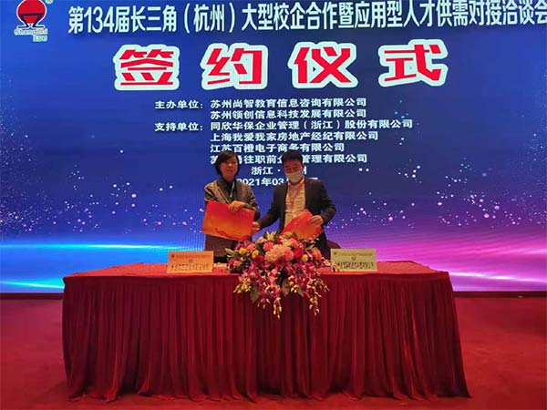 本次《第134届长三角(杭州)大型校企合作暨应用型人才供需对接洽谈会》,共有50多家高等院校及100多家知名企业参与。黑龙江三江美术职业学院共与38家企业进行了意向性洽谈,其中上海茗居网络科技有限公司、北京红黄蓝亲子园、杭州首信网创信息科技有限公司、上海我爱我家房地产经纪有限公司、杭州司越教育咨询有限公司、浙江纤码健康管理有限公司、上海小音咖音乐培训学校等共8家单位与我院现场签订了校企合作协议。