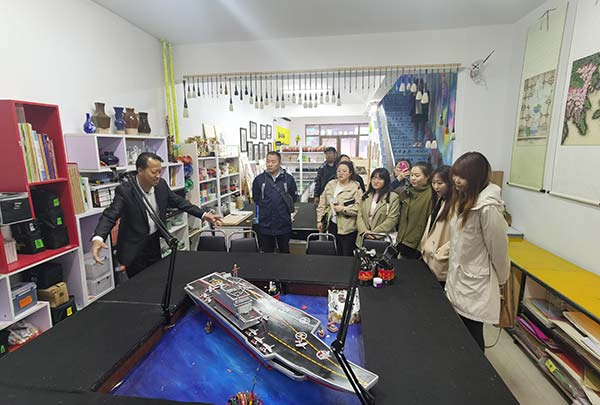 5月7日下午,三江美院院长王英海率领美术教育系部分研学团队冒着蒙蒙细雨,来到少儿美育教育家杜平教授的翰林书画苑参观学习。