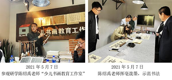 到陈绍禹老师的名师工作室参观研学,陈老师从书法专业角度详细讲解了书法简史。陈老师说,书法教学要充分掌握学情,做到因材施教,培养兴趣,鼓励个性发展,继承经典。通过此次书法研学,使我深受教育。一位好的老师要备足功课,武装自己,除了掌握技法外,更重要的是提高素养和内涵。