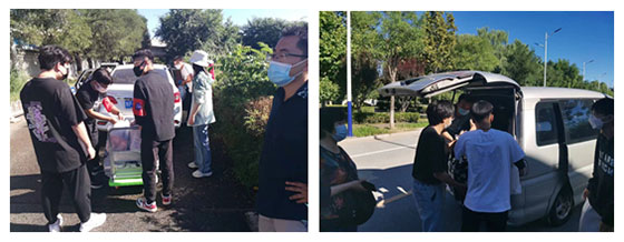 行李搬运组,薛明儒、李昂、王康、王乐天四位老师带领21级学生志愿者,用平板车一趟一趟地把报到学生的行李从校门外转运到校门内,然后用两辆面包车装载行李,一次又一次地运到学生宿舍楼。一天下来,从学校大门到学生宿舍楼往返500余趟,转运学生行李1500余件。有的老师累的腰疼,有的老师顾不上吃口热饭,但他们为了新生安全报到,再苦再累也不抱怨。