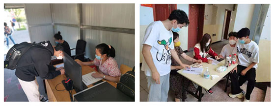 信息登记组,葛霖、吴芬两位老师认真填写学生信息,仔细核对每位数字,保证了报到新生身份证号码、手机号码、健康监测数据的准确无误。