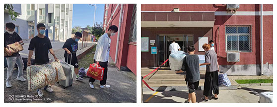 进校引导组,王海英、曹红宝两位老师带领21级学生志愿者,帮助新生引导路线、提拉行李,没有发生一个新生走错路的问题,使全体新生准确到达宿舍指定区域。
