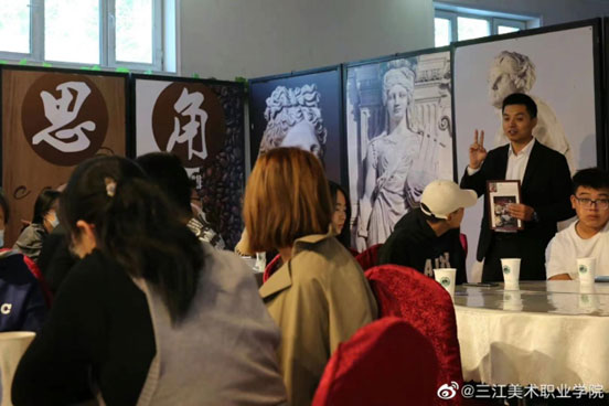 最后,郭勇老师做总结。他指出:作为当代的大学生一定要有文化担当精神;完成一幅好的艺术作品,一定要符合中华民族传统文化的要求,要有文化自信;因为只有民族的,才是世界的。