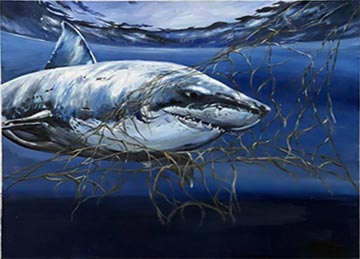 龙奥同学说,他从小就很喜欢海洋世界,喜欢各种海洋生物。有一天,他突然想到了小学语文老师给他们讲了一个故事:“一阵漩涡般的水花淌过,只见那条冲我喊的鲨鱼使劲撞向我,一阵眩晕后,我被撞出了大网,我看清了,那是人类的陷阱!此时,网收紧了。那条救了我的鲨鱼被困在网中,它使劲挣扎着,想突破重重巨网;但网相当坚固,无论如何挣扎,都把它箍得紧紧的。”于是就勾起了龙奥同学的思念,把思念变成作品,则是一件有意义的事情!