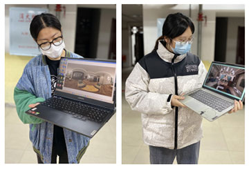 环境艺术工程系的关洪洋和杜启頔把他们近期“企业项目进课堂的实践实训”项目的3D实景设计作品也用电脑给大家做了分享。这个项目为什么这么做?前提是要充分的和客户沟通,而我们同学往往忽略了这一步,总是从自己的主观意识去设计,导致很多设计不符合客户要求。这是经验的总结。之后两位同学从制图到材质到配色的思考再到渲染,一步一步把作品呈现的过程给在场的同学们讲述了一番。