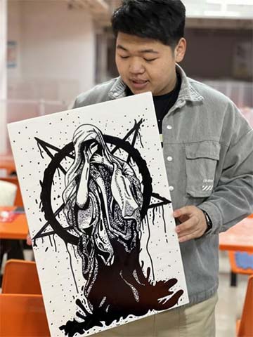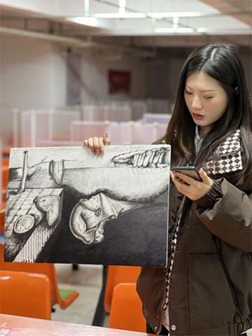 美教系学生林默涵展示他的作品《记忆的永恒》