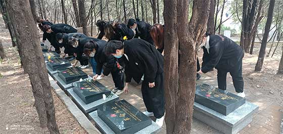 活动第二项是为烈士扫墓并向烈士墓敬献鲜花。无数革命先烈用滚烫的鲜血换来了我们今天的幸福生活,历史不会忘记他们,我们会永远铭记他们。在团总支书记的组织下,大家怀着崇敬的心情清理墓碑周围的垃圾并向烈士们鞠躬献花,表达对烈士的追思之情。