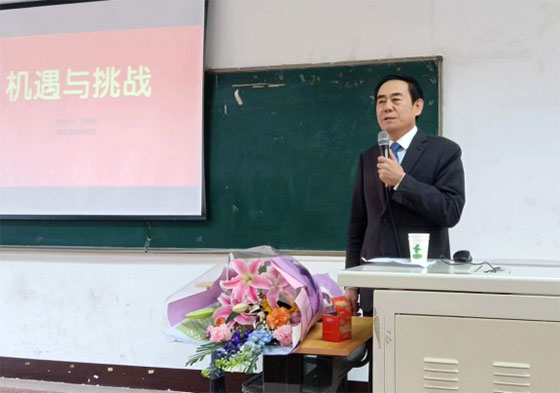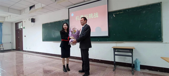 下午13时,伴随着同学们热烈的掌声,身着一身深灰色西服、打着领带、沉稳儒雅的王英海院长走上讲台,与同学们见面,并开始了他题为《机遇与挑战》的报告。