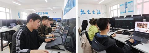 比赛现场,来自影视动画系三维专业的学生全神贯注进行比赛。制作角色模型、道具模型、场景模型,在电脑上展示专业技术,展现工匠风采。参赛选手们专心致志,线条游走在模型的每一个角落,做成不同形状,从而形成立体的模型。