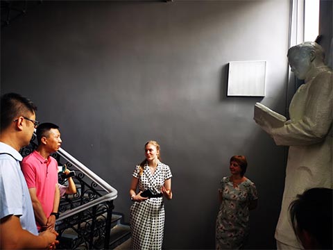 布师大外事办主任塔莉亚娜接待了来访教师,孔子学院教师鲁斯瑶担任随行翻译。塔莉亚娜主任首先带领大家参观了布师大的主要系部,并重点参观了孔子学院。