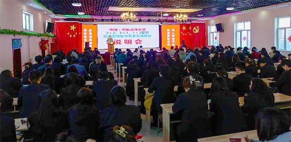 2024年3月5日,黑龙江三江美术职业学院在哈尔滨教学实习基地大礼堂召开学院中俄·中韩合作办学项目说明会。学院理事会理事长、院长王英海教授主持本次说明会。300多名有意愿留学的教师和学生参加会议。会议现场气氛热烈,学生提问踊跃。