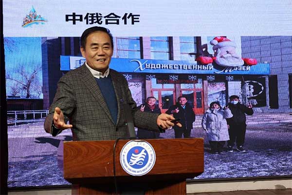 王英海院长首先介绍了与学院合作办学的俄罗斯后贝加尔国立大学的有关情况。俄罗斯后贝加尔国立大学位于俄罗斯联邦后贝加尔边疆区首府赤塔市。是一所多学科、教学科研创新型的综合性大学,是俄罗斯后贝加尔地区一所具有很强竞争力的高等学校。学校设有159个专业,22个博士培养方向。可以培养学士、硕士、副博士和博士。后贝加尔国立大学注重将学科、社会文化、实践等多方面知识进行整合,具有先进的、自由的、创新的科研环境,在实践性教育方面具有独特的优势。经过实地考察,后贝加尔国立大学的住宿环境、学习环境、饮食环境都非常适合三江美院师生在此留学深造。