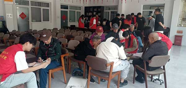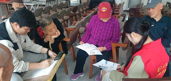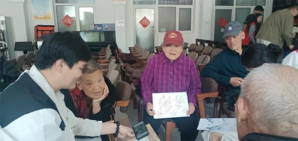绘画组的学生志愿者们与喜欢画画的老人们促膝围坐,亲切交流,给老人展示绘画技艺。很多老人对画画表现出极大的兴致,也一起参与到和志愿者学生们的共同创作中来。志愿者们绘画的同时与老人们亲切沟通,短暂的陪伴也可以给老人们带来很大的快乐。