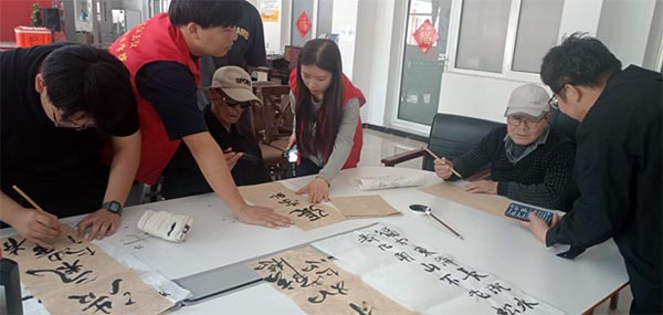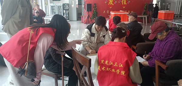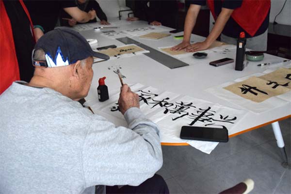 书法组的学生志愿者们挥笔自如,书法作品有的苍劲有力、有的行云流水,展现了三江美院学子良好的专业技能,获得老人们的一致夸赞。同学们耐心的指导、亲切的关怀获得老人真挚的感谢。老人的一句夸奖对于奔波一上午的三江美院志愿者学子们来说足矣。
