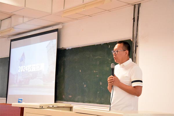 招聘宣讲大会由基地党支部书记、综管办主任丁春生主持并做招聘宣讲动员,全体教工及2022级学生200余人参加了会议。