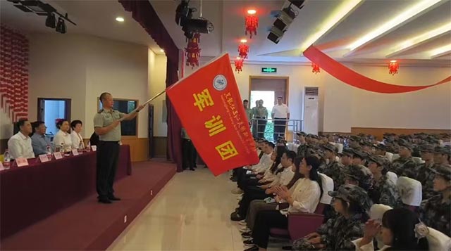 环艺工程专业1班陈诺林同学代表新生发言。他说,将以饱满的热情、昂扬的斗志投入到军事训练中,严格遵守军训纪律,听从指挥,服从命令,努力完成各项训练任务。