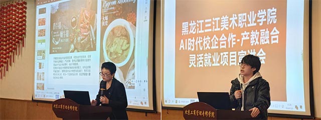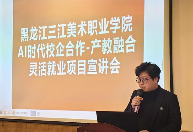 为进一步拓展师生的知识视野,探索AI与艺术创作的有机融合,推进学生更加充分就业,由三江美院北京教学实习基地和好品中国品牌建设办公室、北京逐日文化传媒有限公司、北京米挞文化科技有限公司联合举办的“校企合作AI时代产教融合灵活就业项目宣讲会交流活动”于2024年12月3日在三江美院北京教学实习基地举行。