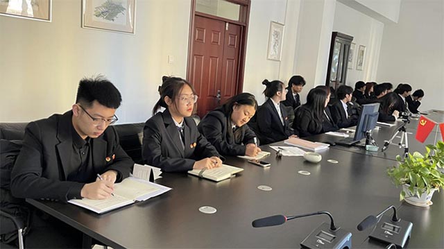 在宪法晨读环节,同学们跟着宣讲人,一字一句地朗读着宪法条文。那铿锵有力的声音,在会议室里回荡,更在心中激荡。