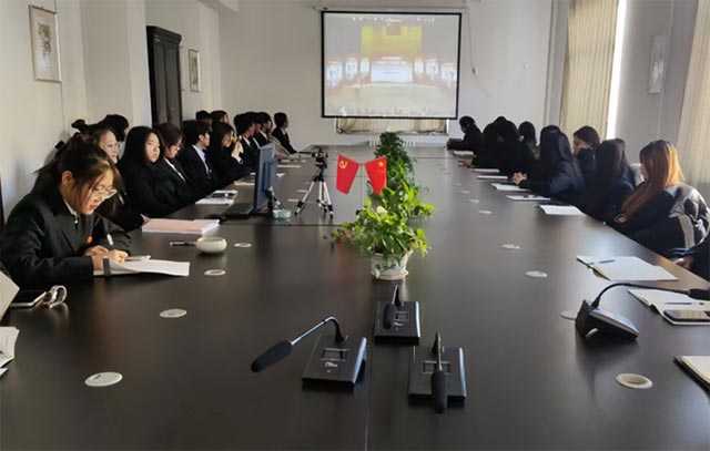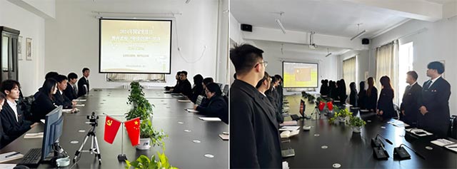 清晨的阳光透过窗户,洒满了明德楼201会议室的每一个角落。会议室里,师生们端坐整齐,脸上洋溢着庄重与期待。随着主持人宣布活动正式开始,屏幕上鲜艳的国旗缓缓升起,国歌在耳畔响起,每个人都自觉起立,目光坚定,心中充满了对祖国的热爱与敬仰。