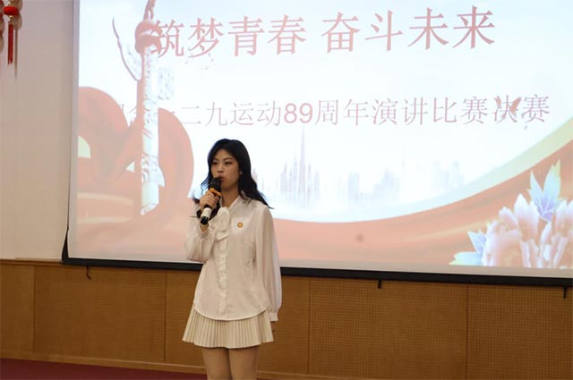 来自2024级各个班级在初赛中表现突出的12名选手是:周美琪、张昊研、李少璞、倪明瑶、陈冰冰、麻逸腾、周珮瑶、赵文俊、齐欣瑶、李响、郑瑶瑶、陈若琳。他们经过前期充足的排练和准备,信心满满地依次登台。伴随着演讲背景音乐的响起,徐徐展开深情而富有感染力的演讲。