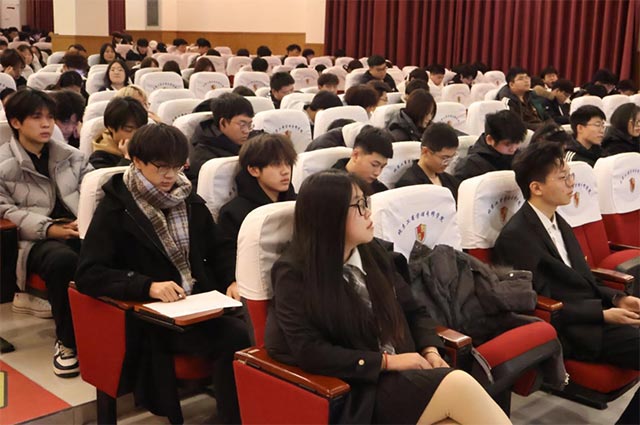 12月5日晚上6点30分,距离活动开始还有半个小时,各班学生们已经开始陆续进场。演讲选手们在进行赛前准备,工作人员准备各个环节的道具和设备调试,进场音乐在耳畔响起,现场气氛紧张又有序。