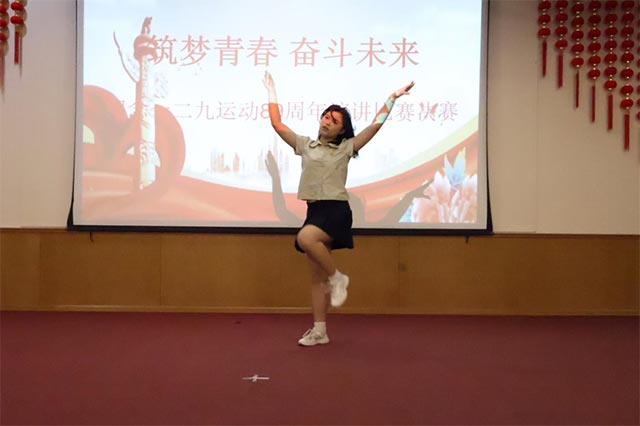 本次演讲比赛还穿插了精彩纷呈的六个节目表演,演讲与表演的交替呈现,使得整个比赛活动更具有青春活力,更受学生们的喜爱,进一步丰富了学生们的校园文化生活。学生们的声乐表演和富有激情的舞蹈将活动现场的氛围推向了一个又一个高潮。
