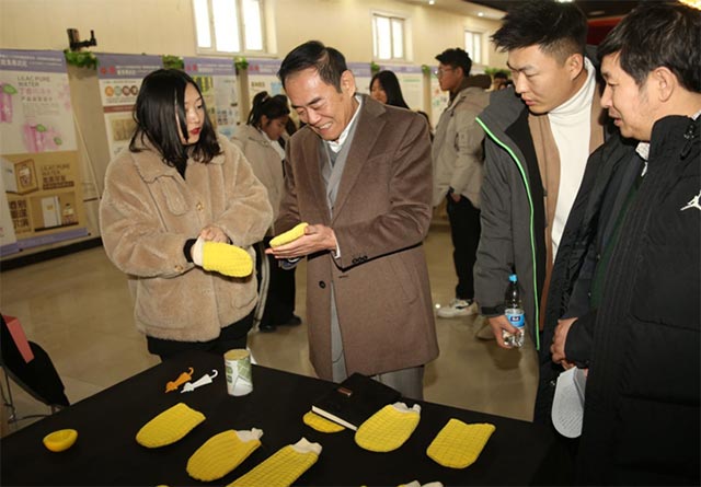 随后,产品设计组的指导教师张树博带着一系列贴近生活的实用设计作品走上前台。从玉米造型搓澡巾、冻梨造型浴球到桃罐头沐浴皂,每一件作品都是创意与实用性的完美结合。这些作品不仅让人眼前一亮,更让人们感受到了设计的魅力与力量。