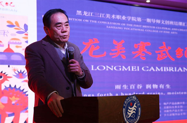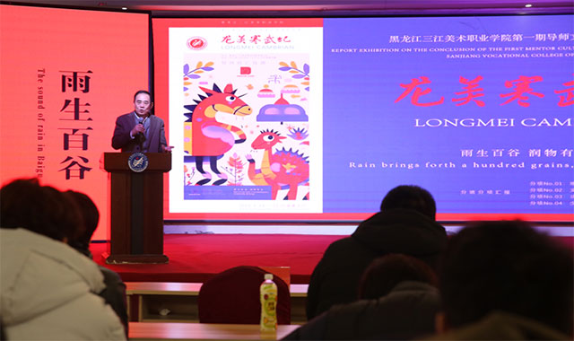 整体汇报结束后,学院理事长、院长王英海教授发表了热情洋溢的讲话。他首先对文创班的结课汇报展给予了高度评价,并对学生们的用心与付出表示由衷的赞赏。他指出,文创导师班是为优秀的、有潜质的、有强烈发展愿望的同学提供学习和展示的平台。它的成立,是我院今年一项重要的创新性工作,是响应省委关于把哈尔滨打造成“创意设计之都”部署的新举措。对于下一步建设集“产教研训创”于一体的数字化“教学工厂”具有探索性意义。在这里,师生们共同面对社会需求的课题,在实战中进步,这对优秀的学生和老师都是很好的机会。