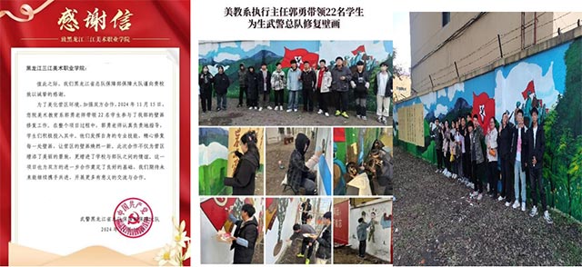 壁画工作室负责人郭勇老师在汇报中说,工作室以传统壁画艺术为基础,通过结合现代材料与工艺,为学生提供了一个文化传承与创新设计的实践平台。2024年,工作室完成了庆安县壁画、黑龙江省武警总队后勤保障大队壁画修复、中央大街酒店壁画修复、中源大道消防站黑板报设计及实施工作等多项社会服务项目。