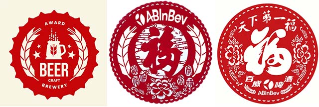 ▲剪纸工作室学生创作的啤酒标识作品