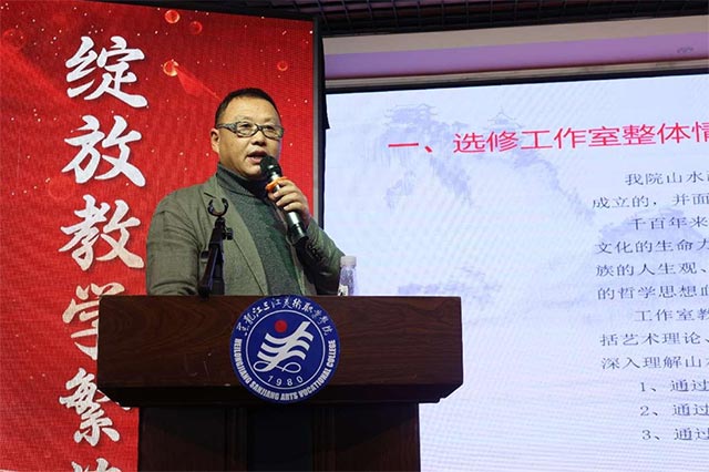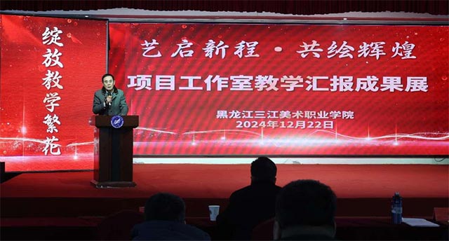 12月22日,三江美院2024年度项目选修工作室成果汇报会召开。学院领导王英海、高明学、鞠剑峰、梁晓勃、马鸿飞出席会议。各系、部、院负责人及哈尔滨教学实习基地全体教师参加会议,北京教学实习基地教师在线上参会。