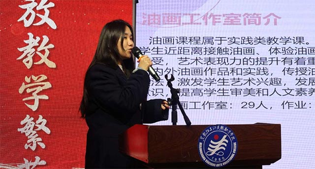 ▲油画工作室负责人管彩露在汇报