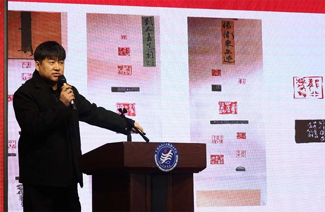 ▲篆刻工作室负责人张志成在汇报