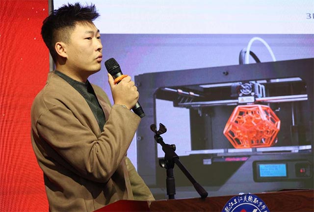 ▲3D打印工作室负责人张树博在汇报