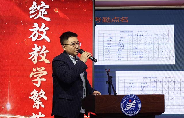 ▲美育训练营工作室负责人马玉磊在汇报