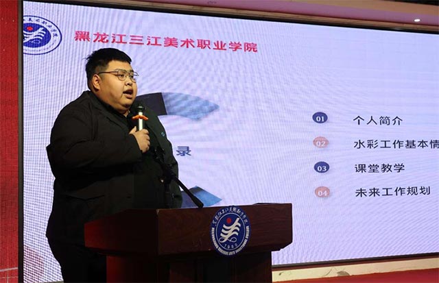 ▲水彩项目工作室负责人栾天祥在汇报