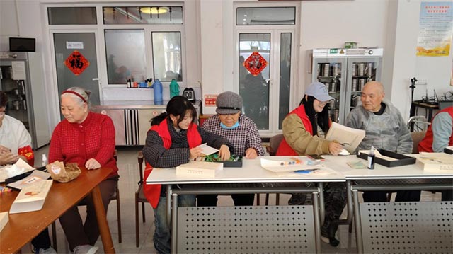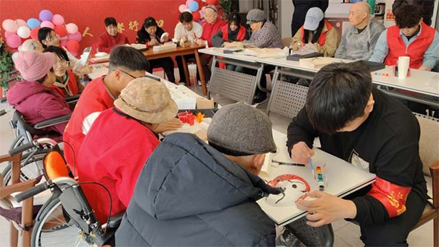 紧接着,志愿者们与老人们携手开启了手工协作的温馨时光。他们拿出事先准备好的彩笔、颜料、剪刀等工具,耐心地指导老人们如何折叠、剪裁、粘贴与涂色。老人们虽年事已高,但手艺依然精湛,与学生们共同创作出一件件精美的手工作品。在制作过程中,学生们与老人们相互帮助、相互鼓励,共同享受着手工创作的乐趣与成就感。一位长辈动容地说道:“今天能和这些孩子们一起动手做手工,我感到非常开心与幸福。真希望你们以后能常来,陪我们聊聊天。感谢你们的陪伴,让我们感受到了家的温暖。”