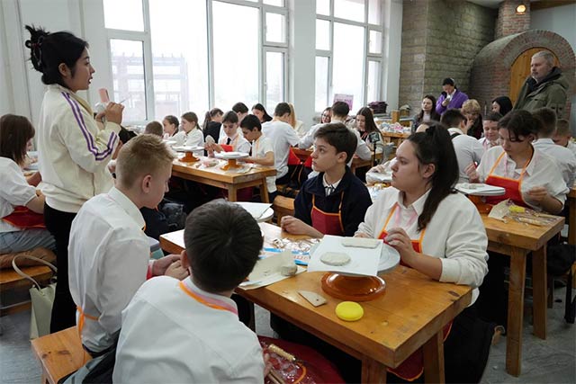 在哈尔滨实验学校,中俄学生联袂演绎俄语诗朗诵、舞蹈及合唱节目,经典歌曲《喀秋莎》的旋律引发两国学子情感共鸣;陶艺课堂上,学员们在中国教师指导下创作出象征友谊的鱼形陶艺作品,指尖泥土凝结文化交流的温度。