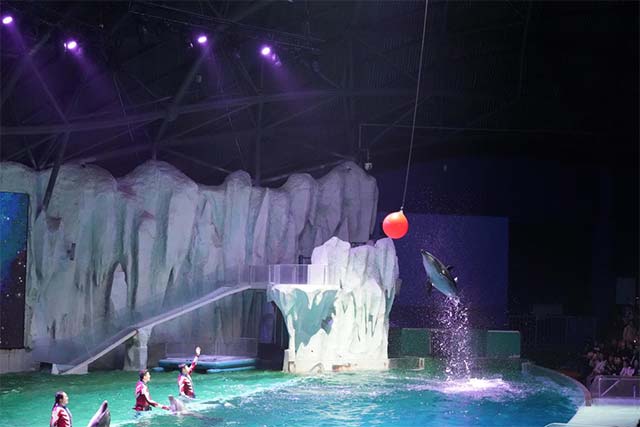 极地文化体验单元则突破传统认知框架,通过白鲸水下芭蕾的流体力学呈现、海豚声呐系统的仿生学解码,构建"生态-科技-美学"三维互嵌的冰城意象。
