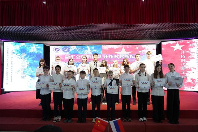 3月30日下午,俄罗斯后贝加尔边疆区中小学生研学结业仪式暨欢送演出在三江美院礼堂举行。学院党委副书记兼工会主席马鸿飞、学院教务处处长李彤、中俄联合教育学院院长赵少鲁博士以及学院部分师生和俄罗斯后贝加尔边疆区全体研学师生出席活动。